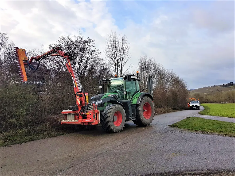 Um Straßen, Wege und Sichtachsen freizuhalten, führen wir den Lichtraumprofilschnitt maschinell durch: